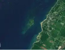 Chantry Island is a small island in Lake Huron, south of the mouth of the Saugeen River and approximately a kilometre off the shores of the town of Southampton, Ontario. It is approximately 19 hectares (47 acres) in size and is a migratory bird sanctuary.[1] Since the sanctuary territory extends 183 metres into the water surrounding the island, the total official area is listed as 63 hectares (160 acres).[2]