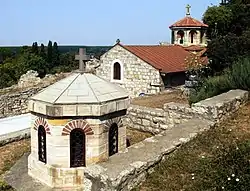 Prior to today's chapel, a dugout chapel existed on the slope, decorated with icons and containing the sacred spring.[1] Since it was in bad condition, after an initiative by Patriarch Varnava, the today's chapel was built and consecrated at Saint Petka's feast day in 1937.[1][2] Digging the foundation uncovered remains of an older temple, and bones of soldiers who were killed in the defence of Belgrade in 1914 and 1915, that were transferred into a nearby ossuary.[1] Also found were Turkish tombstones, including that of vizier Marashli Ali Pasha.[3]