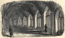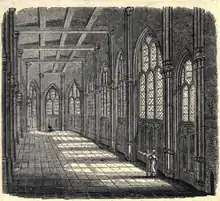 A watchman was employed as caretaker until 1553, when the chapel was finally leased to a grocer, the Upper Chapel becoming his house and shop and the Lower Chapel his warehouse.[6] An extra floor was created in the Upper Chapel by inserting stout wooden beams at the level of the top of the columns.[7]