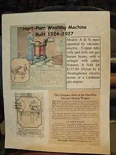 Although best known for producing tractors, the Hart-Parr company also made some of the first washing machines. They sold for $155 in the 1920s, and the buyer had the option of ordering either an electric or gasoline engine.