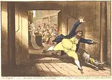 Fox, however, was incommunicado in Italy as the crisis broke; he had resolved not to read any newspapers while he was abroad, except the racing reports.[33] Three weeks passed before he returned to Britain on 25 November 1788, and then he was taken seriously ill (partly due to the stress of his rapid journey across Europe). He would not recover entirely until December 1789. He again absented himself to Bath from 27 January to 21 February 1789.[34]