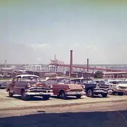 Planning began in the early 1950s for a new bridge to ease the congestion of the nearby Slade's Ferry and Brightman Street Bridges, as well as to carry the proposed Cape Cod Expressway over the Taunton River. The original plan called for a "high level bridge" to be located much further north, near what is now the Veterans Memorial Bridge, with a highway passing through the north end of the city in a direct line to Wareham.[3] In 1959, the role of the new bridge was changed to carrying the new Interstate 195 over the Taunton River, connecting Providence and New Bedford. Construction of the bridge started in 1959 and finished in the spring of 1966. The bridge was named after Charles M. Braga, a Fall River native of Portuguese American descent who was killed in the attack on Pearl Harbor.