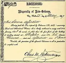 - ↑ "Proclamation: Recorder's Office. First District. June 5, 1858". The Times-Picayune. June 6, 1858. Retrieved February 2, 2022.
