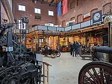 Waltham received a $10 million urban revitalization grant, which allowed the site to be renovated and preserved.[1] As part of the site's renovation, a group of cultural, civic, and business leaders led by Michael Folsom, an MIT professor, created the Charles River Museum of Industry & Innovation in what had been the mill's massive steam-powered engine and boiler rooms. Following a monumental campaign of fundraising, cleaning, building, planning, and installation, the museum began operation in 1980.