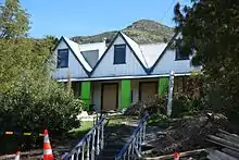 The Simeon family with five children, a housekeeper, a governess, a lady's maid, a housemaid, a nurse, a cook and a footman left England from the East India Docks on 18 June 1851 on the ship Canterbury and arrived on 21 October in Lyttelton.[14][15][16] Lyttelton inhabitants were amazed about the size of the party.[16] The children and servants were put up at the Mitre in Lyttelton at a cost of £4 10s per day until he had found a town house to rent on the Bridle Path.[16][17] He bought town section 102 in Lyttelton's Coleridge Street (today Coleridge Terrace), not far from the rented house, and built a substantial house with eight rooms near where the Bridle Path goes over the hill to Christchurch.[16] This latter house is still standing and is registered as a Category II historic place by Heritage New Zealand.[18]