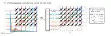 Charlieplexing can be used in displays and resistive or projected capacitance keypads and touchscreens, using a simple array (shown). The diagram shows that eight inputs creates 16 intersections when used in an x/y array, but 28 intersections when used in a Charlieplexed array. When functioning as an LED display or mechanical keypad, the use of reversed pairs of LEDs or standard diodes at the intersections doubles the 8 input matrix size from 28 to 56.[1]