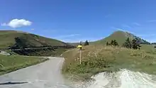 The ascent to the chalets by bike, via the D57d departmental road from the Col de Porte, is 5.6 km (3.5 mi) long, of which almost 4.5 km (2.8 mi) is forest. The average gradient is 6.1% (7.5% excluding the first 1,500 m; 4,900 ft of false flat), with one section at 11%.[39]