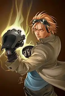 Victor Chase Stein[1] (also known as Talkback[2]) is a superhero appearing in American comic books published by Marvel Comics. The character was created by author Brian K. Vaughan and artist Adrian Alphona, and debuted in Runaways #1 with most of the other main characters.[3] Along with every member of the original Runaways, he is the son of evil villains with special abilities—in Chase's case, mad scientists.[3] Chase tends to be viewed as the "wild card" in the series due to his shifting roles within the group (e.g. getaway guy, technical wiz, loose cannon).[4] Chase, 18 years old, is the eldest of the Runaways.[5] Chase shares a psychic and empathic link with dinosaur Deinonychus Old Lace, granting Chase the ability to command the creature.[5] Chase also possesses his signature set of gauntlets, The Fistigons.[6]