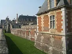 The property was owned, or at least occupied, by Louis Joseph, Duke of Vendôme.[12] Louis Joseph was very fond of the château, entertaining his friends there in luxury. Guests included the poets Guillaume Amfrye de Chaulieu and Chapelle.[13] Vendôme undertook major alterations which removed many original features and decoration from the Renaissance.[13] Only the bedchamber of Diane was spared from the redecoration of the apartments.[14] A third story was added to the corps de logis to increase the accommodation and the wing on the left-hand side was rebuilt.[15][14] The gardens, which had fallen into neglect over the years, were destroyed, and the redesign of the parkland entrusted to André Le Nôtre.[14] The galleries and bath building surrounding the old gardens were demolished; so too were the orangerie, aviary, and heronry. The stables and Hôtel-Dieu were also demolished and rebuilt in new locations, to make way for intersecting canals. The canals fed two windmills, one of which was built on the site of the old Hôtel-Dieu. One of the canals was dedicated to carp and divided into two compartments by a wall of water lilies.[16]