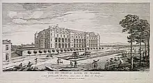 Initially called the Château de Boulogne,[1] the new building quickly became known as the Château de Madrid, taking its name from the Royal Alcázar of Madrid, the royal castle in Madrid. Both buildings were constructed on the edge of a forest near a large city, and both were made up of a long central corps de logis with loggias on two storeys and a cubical pavilion at each end.