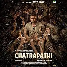 Chatrapathi is a 2023 Indian Hindi-language action film directed by V. V. Vinayak and produced by Jayantilal Gada of Pen India Limited.[2] It is a remake of the 2005 Telugu film of the same name and became a box office bomb.[3] The film stars Bellamkonda Sreenivas in his Hindi film debut playing the titular role[4][5] with Nushrat Bharucha, Bhagyashree, Sharad Kelkar, Freddy Daruwala, Karan Singh Chhabra, Rajendra Gupta and Rajesh Sharma play supporting roles.[1][2]