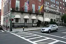 The Bull and Finch Pub was founded in 1969 by Thomas Kershaw and a partner. The two owned a building in Beacon Hill, Hampshire House, and wanted to find a use for the basement which at the time was inefficiently used as just storage. They tried to model the Bull & Finch on English pubs, complete with accoutrements imported from England. One story behind its name is that it is a reference to the architect Charles Bulfinch, who designed the Massachusetts State House among other buildings.[2] The bar was popular with locals in its first decade.[3] The upstairs of Hampshire House at the time was a private club called Quaffer's.[4] In 1982 Boston magazine awarded the Bull & Finch the title of Boston's best bar.[5][1]