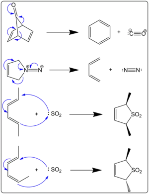 The above are known as cheletropic eliminations because a small, stable molecule is given off in the reaction.[1]