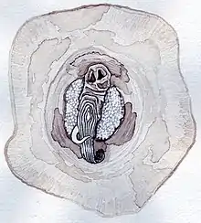 Chelonibia testudinaria are found to attach themselves to shells/objects of the larger organisms from each region of the host's body. C. testudinaria preferentially behaviorally select green turtles as hosts compared to Chelonibia caretta, which select Hawksbill sea turtles as hosts.[4] On a turtle's shell, the greatest water flow is over the front central portion. It has been shown that C. testudinaria can relocate on the turtle's shell, usually towards the optimal position with maximum water flow and thus the greatest filter feeding opportunities. The movement is around 1.4 mm (0.06 in) or less per day and is probably achieved by advancing the shell forward with each increment of growth. Over several months, several scutes can be crossed by these means.[5]