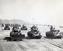 Postwar the Army stood down the provisional 713th keeping few flame tanks.[21] When the Korean War broke out the Marine Corps put together nine CWS-POA-H5s from Pendelton and Hawaii out of the 26 flame tanks it had received during WWII. Together they formed a platoon, named the "Flame Dragons" attached to Hq 1st tank battalion.[29] They landed at Inchon in 1950 and were the only U.S. mechanized flame unit to be in Korea.[29] These tanks would first see combat on 15 September 1950 landing in the second wave on Wo-mido Island.[23] From there they would advance and participate in the First Battle of Seoul.[23] The Seabees work was outdated when upgraded flamethrowers were mounted in M67s in 1955.[23]