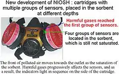 {{cite journal}}: CS1 maint: multiple names: authors list (link) Stetter J.R. and Maclay G.J. (1996) Chemical sensing apparatus and methods, Transducer Research Inc., Patent No. US5512882 - ↑ Melissa Checky, Kevin Frankel, Denise Goddard, Erik Johnson, J. Christopher Thomas, Maria Zelinsky & Cassidy Javner (2016). "Evaluation of a passive optical based end of service life indicator (ESLI) for organic vapor respirator cartridges". Journal of Occupational and Environmental Hygiene. 13 (2): 112–120. doi:10.1080/15459624.2015.1091956. ISSN 1545-9624. PMC 4720034. PMID 26418577.