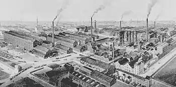 In 1860, Grüneberg finished his doctoral studies and received a Ph.D. from the University of Leipzig.[7] His research was in the field of agricultural chemistry, in particular mineral fertilizers.[8] In 1864, the factory began the production of the fertilizer superphosphate, produced from phosphorite from a newly acquired mine in Nassau an der Lahn. One year later the production of the fertilizer ammonium sulfate begins. In 1866, the factory begins to use the Leblanc process to produce potassium carbonate from sodium chloride.[7] During the Centennial Exposition in Philadelphia in 1876, the company was awarded a gold medal for having first manufactured Potash and Potash salts, according to Leblanc's process, on a manufacturing scale , and for the purity of the products exhibited.[9]