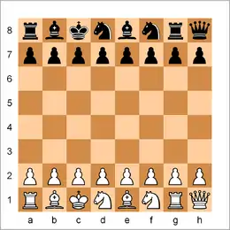 Before the game, a starting position is randomly determined and set up, subject to certain requirements. White's pieces (not pawns) are placed randomly on the first rank, following two rules: