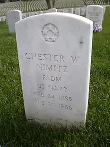 - ↑ "Nimitz's Funeral Is Held On Coast; Admiral Declined Arlington Burial to Lie With Men". The New York Times. February 25, 1966. Retrieved June 3, 2018.