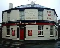 The first building on Chesterfield Road (although bearing an Albert Road house number) is the Crown Inn.