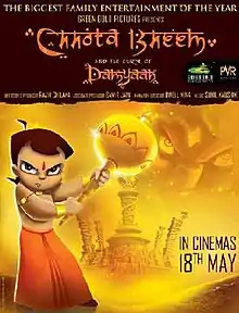 Chhota Bheem and the Curse of Damyaan is a 2012 Indian computer-animated fantasy action adventure film written and directed by Rajiv Chilaka, based on the character Chhota Bheem and his friends. It is the eleventh movie in the Chhota Bheem film series and the first movie to be released in theatres. The film was made under the Green Gold Animation banner in association with INOX Cinemas and distributed by PVR Pictures worldwide.[1]