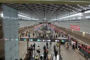 Chiang Kai-shek Memorial Hall (Chinese: 中正紀念堂; pinyin: Zhōngzhèng Jìniàntáng), secondary station name Nanmen (Chinese: 南門), is a metro station in Taipei, Taiwan served by the Taipei Metro.[3] It is a transfer station for the Tamsui–Xinyi line and Songshan–Xindian line. While the memorial for which the station is named was embroiled in a naming dispute,[4] the name of the station has remained unchanged.