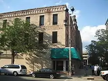 The Chick House's design is simple and utilitarian, reflecting its construction for use as a hotel. The three-story brick structure's 66 foot (20.1 m) east facade faces Main Street and its 149-foot (45.4 m) south facade faces toward Elm Street. The building incorporates elements from Greek Revival and Italianate styles and presents itself as an architectural "antithesis" to the adjacent Richardson Romanesque Stewart Building.[3] The Chick House originally has an "L" shape but additions during the 1890s, 1900s and in 1932 partially filled in the rear of the building, which faces toward an alley.[3]