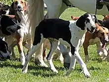 The Chien Français Blanc et Noir (translated into English as the French White and Black dog) is a breed of dog of the scenthound type, originating in France. The breed is used for hunting in packs and descends from the old Hound of Saintonge type of large hunting dog.