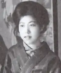 After returning to Osaka, She became a pupil of Tsunetomi Kitano (ja:北野恒富, Kitano Tsunetomi) and Kyuho Noda (ja:野田九浦, Noda Kyuho). Kitano is famous painter who draws (Bijin-ga (美人画, "beautiful person picture", is a generic term for pictures of beautiful women in Japanese art) .[3] In 1919, She started studying under Keigetsu Kikuchi (ja:菊池契月, Kikuchi Keigetsu) in Kyoto.
