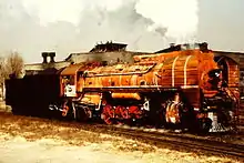 The QJ (Chinese: 前进; pinyin: Qián Jìn; lit. 'To go forward" or "to advance') was a type of heavy freight steam locomotive introduced in 1956 by the China Railway. The majority were built by Datong Locomotive Factory. The prototypes and early production of the class were designated HP (Chinese: 和平; pinyin: Hé Píng; lit. 'peace'), being redesignated as FD (Chinese: 反帝; pinyin: Fǎn Dì; lit. 'Anti-Imperialism') class during the Cultural Revolution, before becoming the QJ class in 1971.