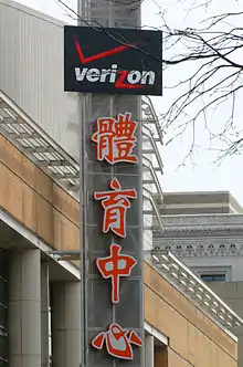 Along with the development of the Verizon Center, historic buildings, mainly along the west side of 7th Street, were renovated and tenanted, primarily with nationally known brand shops and dining establishments. Within a short time, a significant mixed-use office-residential-retail development on the southeast corner of 7th and H streets commenced construction. These developments, which included restaurants, shops, a cinema complex, and a bowling alley, together with the Verizon Center, transformed the area into a bustling scene for nightlife, shopping, and entertainment. An anomaly is that most of the businesses are no longer representative of Chinatown, yet due to a city design guidelines encouraging businesses to use Chinese characters, even national chains hang their names in Chinese outside their stores.[15] Chinatown has become home to many high-growth technology companies, such as Blackboard, Blue State Digital, LivingSocial, and The Knowland Group.[24] It is also the location of the Washington branch of the Goethe-Institut.