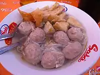 - Bakso (肉酥), bak-so is the Hokkien pronunciation for 'shredded-meat'), beef or chicken meatballs, usually served in a bowl of broth and other ingredients.
