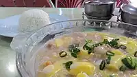 - Sup ikan bihun, soup-based seafood dish served hot made of rice vermicelli and fish.