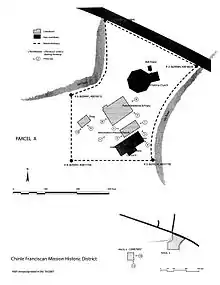 The Chinle Franciscan Mission Historic District is located in Chinle, Arizona, one of the population centers on the Navajo Nation. It is on the west side of the main east–west route through Chinle, Indian Service Route 7. The 2.92-acre site is approximately 2 miles west of Canyon de Chelly National Monument, and is the core of a larger 160-acre parcel which is in held in trust by the U.S. Federal Government for the Navajos. It was originally set aside for the Franciscan Friars in 1903, and is now leased by the Roman Catholic Church, through the Diocese of Gallup, New Mexico. It includes the Our Lady of Fatima Church. The entirety of the historic district is defined by three historic buildings, one historic object and one historic site. The buildings were constructed between 1905 and 1925 and are the Friary, the Annunciation Mission Church, and the Workshop/Garage; the object is the church bell, which was cast in 1914; and the site is the church's cemetery, which was active between 1907 and 1935. The district is made up of two discontiguous parcels. The first parcel is 2.2 acres and contains the Friary, Church, Garage and Bell, while the second parcel is .72 acres and contains the cemetery.[2]:42