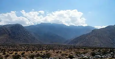 Chino Canyon is a desert canyon fed by springs. These produce a waterfall and a stream that peaks out at about 5.4 ft3 per second (0.15 m3 per second). The stream flows under the Aerial Tramway Valley Station and later dries up about 3.5 miles down the canyon.[2]