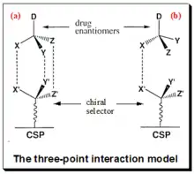 - ↑ Pirkle, WH; Pochapsky, TC (1989). "Considerations of chiral recognitions relevant to the liquid chromatographic separation of enantiomers". Chem. Rev. 89 (2): 347–362. doi:10.1021/cr00092a006.
