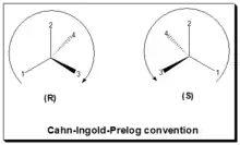 - ↑ Cahn, B. S.; lngold, C. K; Prelog, V (1956). "The specification of asymmetric configuration in organic chemistry". Experientia. 12 (3): 81–88. doi:10.1007/BF02157171. S2CID 43026989.