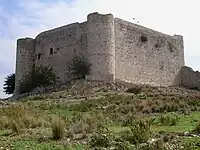 The new fortress was near the princely capital of Andravida, some 13 kilometres (8 mi) away, and ca. 5 kilometres (3 mi) from the Principality's largest port and town, Glarentza. These three sites were the administrative heart of the Principality and, along with the fortress of Beauvoir or Pontiko at Katakolo further south, served to secure control of the fertile plain of Elis, which formed a major part of the princely domain (along with Corinthia and the Evrotas Valley in Laconia).[7][8] Despite its importance, however, throughout the history of the Principality of Achaea Chlemoutsi was never the object of major military operations; rather, its main function seems to have been as a prison for distinguished captives, such as the Byzantine generals taken captive at the Battle of Makryplagi in c. 1263, one of whom, Alexios Philes, died in captivity there.[9]