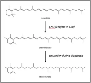 Chlorobactane is the diagenetic product of an aromatic carotenoid produced uniquely by green-pigmented green sulfur bacteria (GSB) in the order Chlorobiales.[1] Observed in organic matter as far back as the Paleoproterozoic, its identity as a diagnostic biomarker has been used to interpret ancient environments.[2][3]