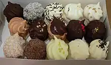 In German-speaking Switzerland they are still sold as Mohrenkopf.[18][19] In the French-speaking part of Switzerland, as well as in France, they are known as Têtes Choco ("chocolate heads") or more commonly as Tête-de-nègre in France.[20]