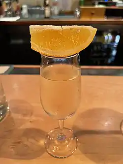 Standard garnishlemon wedge sprinkled with white/ brown sugar