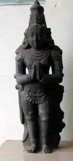 Parantaka II was a devotee of the reclining Vishnu (Vadivu Azhagiya Nambi) at Anbil, on the banks of the Kaveri river on the outskirts of Tiruchy, to whom he gave numerous gifts and embellishments. He also prayed before him before his embarking on war to regain the territories in and around Kanchi and Arcot from the waning Rashtrakutas and while leading expeditions against both Madurai and Ilam (Sri Lanka).[149] Parantaka I and Parantaka Chola II endowed and built temples for Shiva and Vishnu.[150] Rajaraja Chola I patronised Buddhists and provided for the construction of the Chudamani Vihara, a Buddhist monastery in Nagapattinam, at the request of Sri Chulamanivarman, the Srivijaya Sailendra king.[151][152]