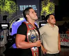The match was scheduled for Christmas in PR, the promotion's season-closing event. An angle was run where the incumbent champion was injured and the title forfeited and awarded to Angel, without even having to compete once in an official match.[5] However, the decision was revoked shortly afterwards and Savio Vega, former heavyweight champion of the IWA, World Wrestling Council, World Wrestling Association, Wrestling Alliance Revolution and Revolution X-Treme Wrestling, emerged as a surprise contender to compete for the championship.[5] Angel won the match by pin fall, following two of his signature moves on the former World Wrestling Federation Superstar.[5] He closed 2010 by winning Puerto Rico Wrestling's "Newcomer of the Year" award, which is selected by popular vote.[6]