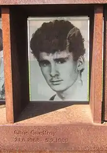 ![]() Chris Gueffroy, at the Window of Remembrance, Berlin Wall Memorial, Bernauer Straße | |