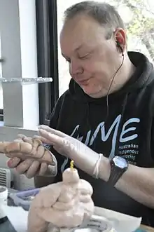 Mason cites as a major influence the artist Ron Mueck,[2] with whom his work shares the Hyperrealist style that emerged from photorealism, and whose subject matter is derived from reinterpretations of photographic imagery. His signature depictions of voluptuous women are sourced from images collected from the Internet and various publications; in his search for reference material he aims for women whose dimensions result in the figures being "almost as tall as they are wide," dimensions which he views as "perfect" and "archetypal."[2] In recent years Mason has developed a tendency towards smaller-scale ceramic pieces and has expressed a strong interest in pursuing taxidermy in his work, which APA Studio Manager James McDonald describes as "a logical next step."[2] Mason has exhibited at Gertrude Contemporary,[3] c3 Contemporary Art Space[4] and Linden New Art. He has also held a solo exhibition at Sydney's prestigious Darren Knight Gallery in 2014.[5]