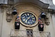 On the tower quarter-boy figures strike the quarter hours on the Automaton clock.