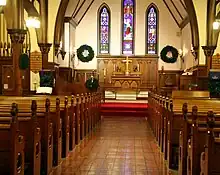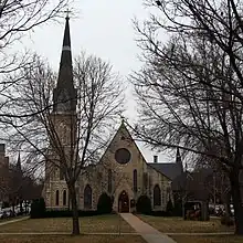 The cornerstone was laid June 24, 1869 and the new church was consecrated by Bishop Henry Benjamin Whipple on December 19, 1871.[3] (Due to concerns about the foundations, the steeple was not added until 1897.)[4]