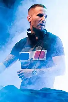 Lars Christian Karlsson (born 14 July 1975), also known by his stage name Bloodshy, is a Swedish DJ, percusionist, récord producer and remixer known for his work with the musical groups Bloodshy and Avant,[1] Miike Snow, Ingrid, and Galantis.[2] He started his international music career as one half of the electro pop duo Bloodshy & Avant with Pontus Winnberg,[3] producing and co-writing tracks for pop stars such as Madonna,[4] BoA,[5] Kylie Minogue, and Katy Perry.[3] Bloodshy & Avant notably co-wrote and produced Britney Spears' single "Toxic",[3] which earned them a Grammy Award for Best Dance Recording in 2005.[6] While continuing to work with Bloodshy and Avant, Karlsson also became a member of the indie pop band Miike Snow around 2007.[7] Miike Snow, the group's debut album, was released in 2009,[5] and peaked at number 11 on the Top Electronic Albums chart in the United States.[8] Miike Snow won the 2011 European Border Breakers Award,[4] and their second album Happy to You reached No. 1 on the Belgian Heatseekers Albums Chart[9] and 43 on the Billboard 200.[10]