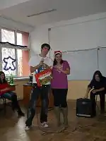 At the beginning of December, the Christmas lights are turned on all over the streets. The same night, Moş Nicolae comes and gives children presents.[11] Children receive their gifts early in the morning of December 6 or late at night on December 5; traditionally, the gifts are put in their laced up boots.[12] Children are usually given sweets or books; if they have been naughty, they get wooden sticks.[12]