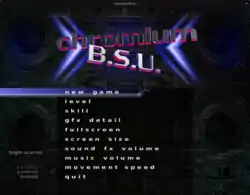 Chromium B.S.U. is an arcade-style, top-scrolling space shooter available on Windows, iPhone, PSP, Mac, AmigaOS 4, Linux and numerous other UNIX-like operating systems. It is a free software distributed under the Clarified Artistic License. The original version of Chromium B.S.U. was designed in 2000 by Mark B. Allan and released under the Artistic License.[1] Since then it has received many contributions from the community.